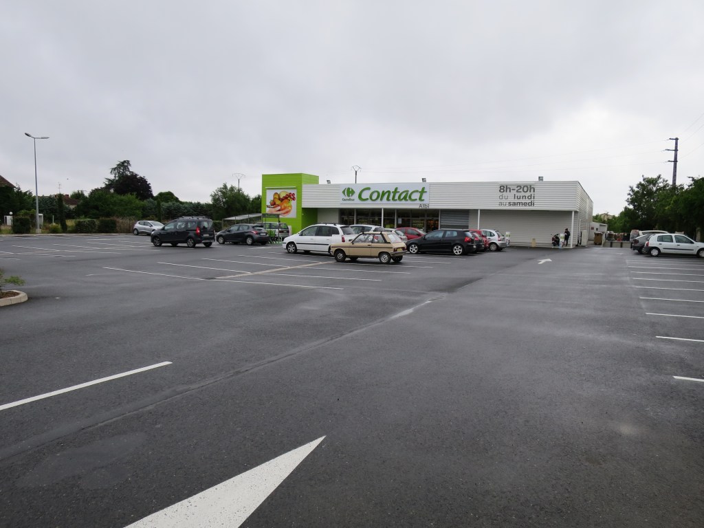 I am soon on the familiar D999. Past where the vast Mammouth hypermarket had stood. It’s now a small ‘Carrefour Contact’, ‘le concept de commerce de proximité’. Our hypermarket has become a corner-shop. Is this a sign of what’s to come? Will this be like visiting childhood places? Will everything have shrunk? I cross the railway line embedded in the road. Already disused in 1976, it has still not been tarmacked over, as if they are still hoping for a train to cross.