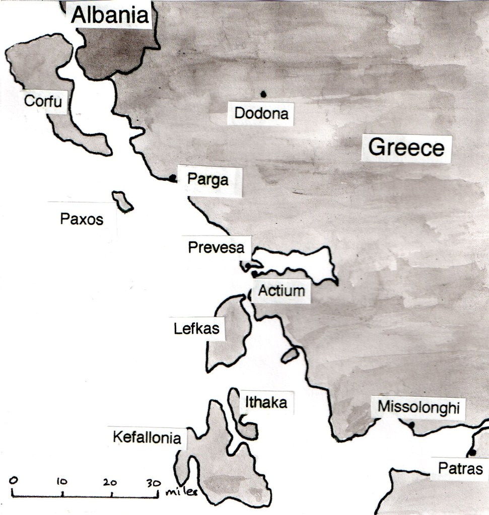 Ithaka. Pray that the road is long. A day coasting between mainland and islands, Odysseus’ route home.