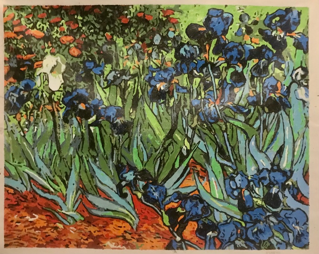 I had painted two Van Gogh paintings, paint-by-numbers, 25 colours, 5,000 colour cells, “Don’t be intimidated eyeful of lines and colours”, the Instruction Leaflet helpfully counselled. Methodically I had built, colour by colour, over many tranquil hours, a simulacrum of the facture of Vincent’s paintings – themselves painted quickly, urgently even desperately in the St Remy Asylum often in a single session. Each of the simulacra took weeks. And yet they have a surprising vividness and vitality.