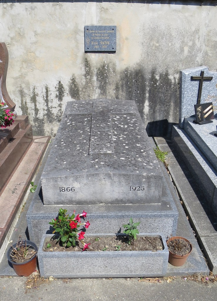 In fact, Satie moved here not because of a broken heart, but because it was cheaper, and away from the temptations of Montmartre. How easily I used to fall for romanticised bourgeois tales of poets and artists ‘maudits’! In Arcueil Satie was a respected citizen, who walked each day to Montmartre to play the piano in night clubs, and meet his avant-garde friends, stopping on the way (at rather too many bars) to telephone them to make appointments. He was championed successively by Debussy, Ravel and Cocteau, worked with Picasso, was one of the original ‘Les Six’ …