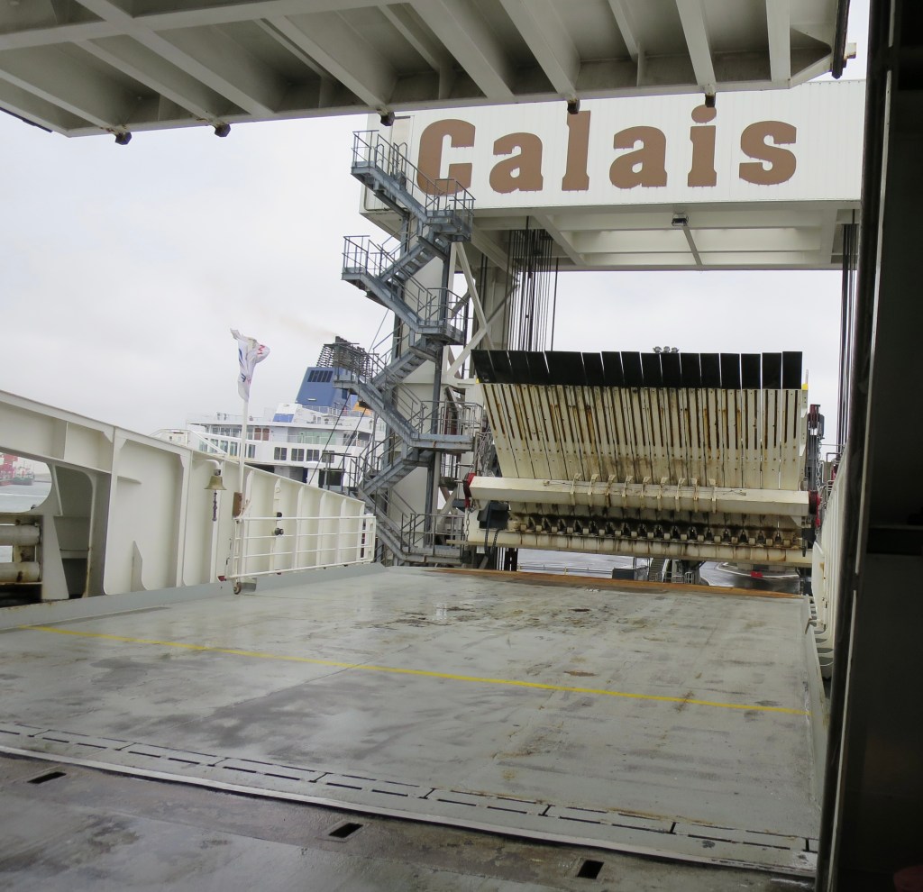 As the bow doors creak open, I prepare for the young man next me, who’s been revving the engine of his black Range Rover impatiently, to speed past me onto the ramp. Instead he looks across, smiles, and waves me on before him, with a courteous gesture. I acknowledge with a smile and a gesture I hope equally courteous – thank you, but do please go ahead. I follow him, freewheeling my heavily-laden bike down the steep, wet ramp, as the enormous lorries thunder past me.