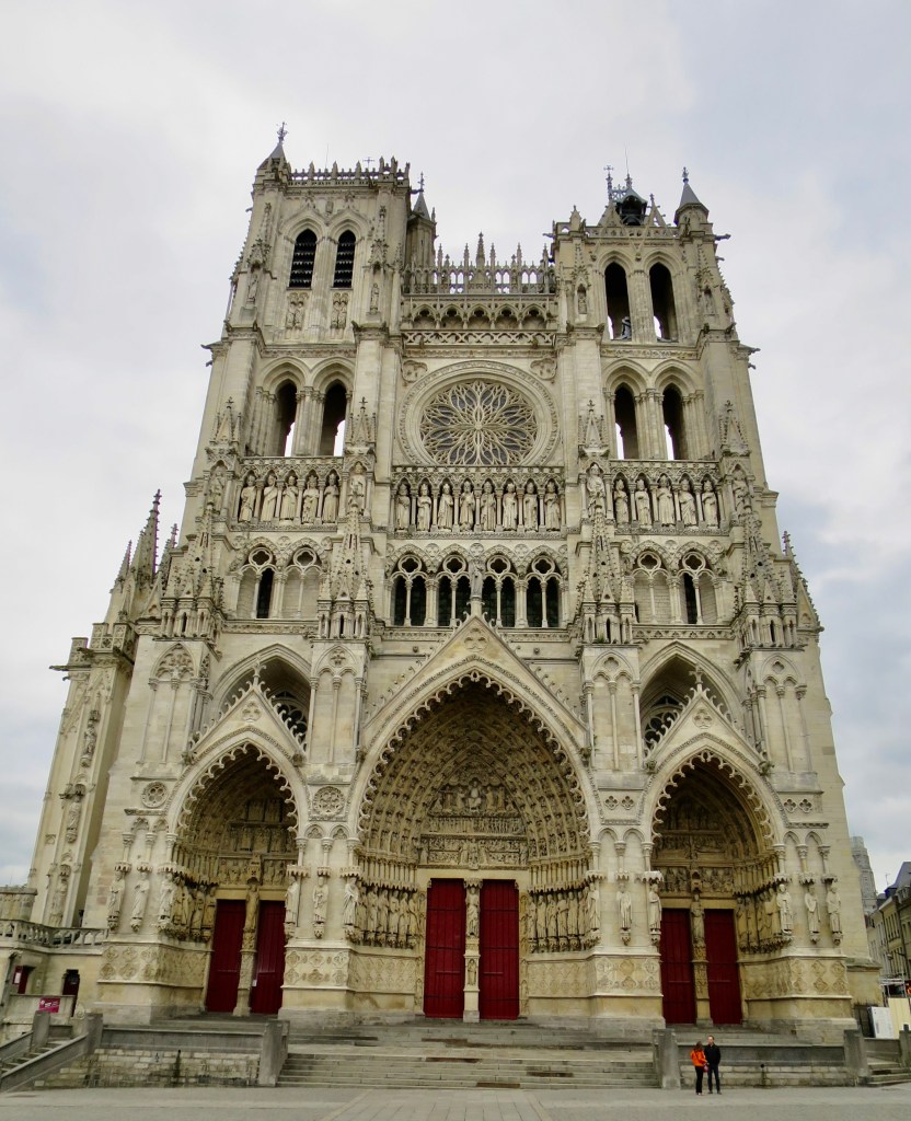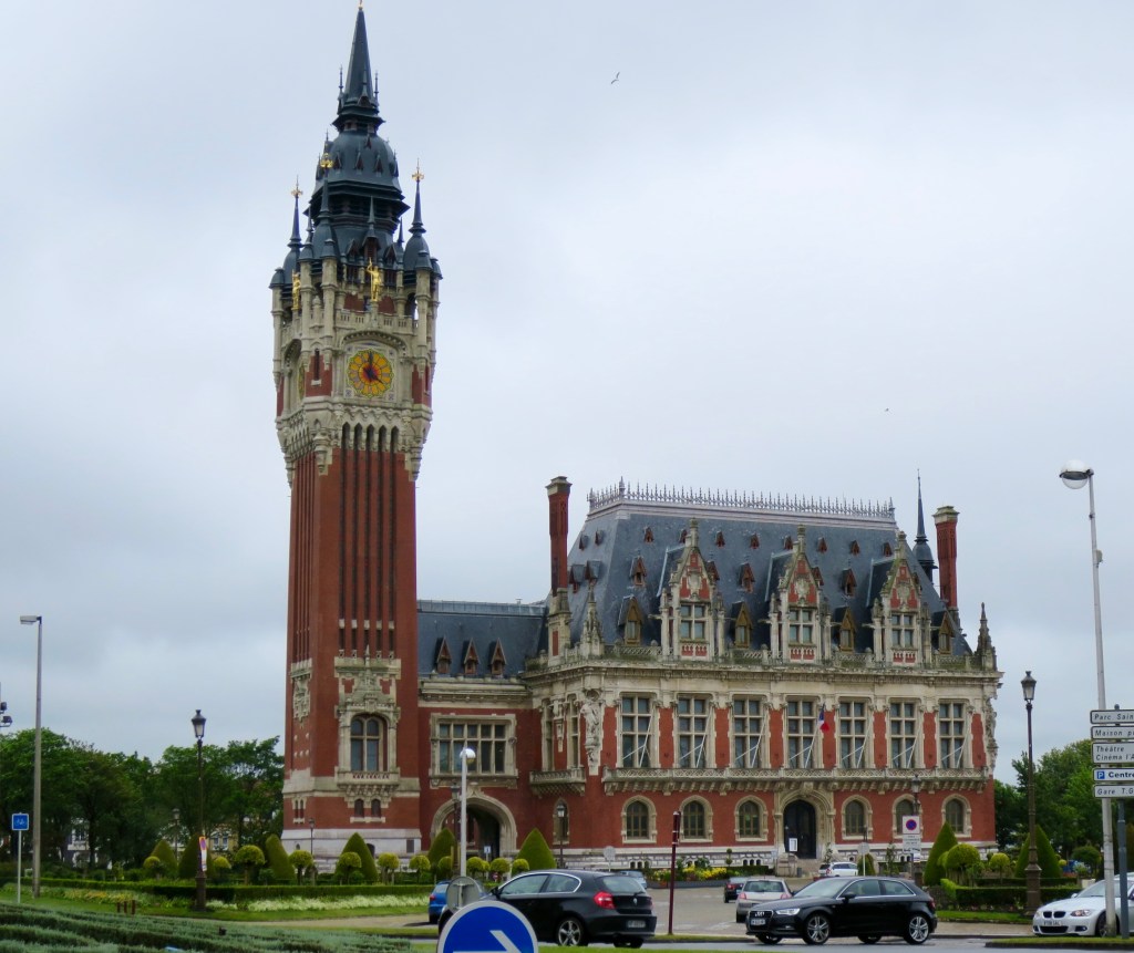 Through the centre of Calais, past the splendid Flemish-Renaissance-Revival town hall, across the Place d’Armes, the open market square, which today is a windswept, empty and bleak place, made more so by contemporary ‘art interventions’: fountains that wee weakly, and a grey sculpture of a grey couple huddled against wind and rain, altogether too literal.
