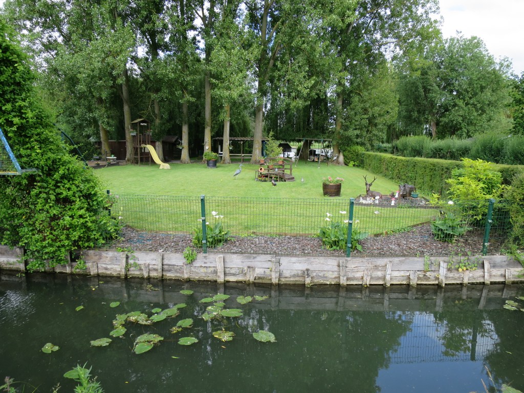 I eventually find my way out, under grey skies, pushed along by the wind at my back, across land flat as Flanders, with canals, dykes, and pasture, through Gravelines to Loon-Plage.