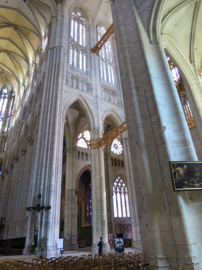 Its pride and its resilience is exemplified in its thirteenth-century belfry; entirely independent of the church, it was and is the mark of the town’s status. Each time it has been demolished it has been rebuilt: in the fourteenth, sixteenth and nineteenth centuries, and then after it was dynamited in 1944. On it is a plaque: ‘symbole des libertés communales’. Communale is one of those proud French words – in this case incorporating ‘common, commune and communal’ – for which English, and the English, have no exact equivalent. To our loss.