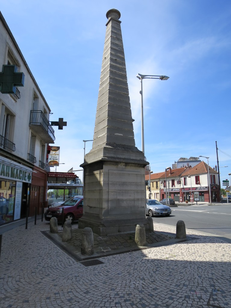 I am beginning today by backtracking north, along the Meridian, to Juvisy-sur-Orge, where there is an obelisk commemorating the survey of the Meridian. It balances the one north of Paris, at Saint-Martin-du-Tertre. As the one in the Parc Montsouris balanced the one on Montmartre. French symmetry.